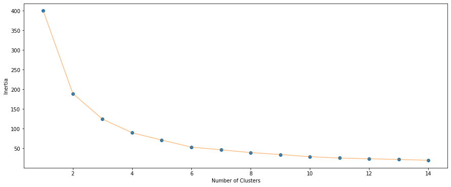 - inertia값 시각화 했을 때, 클러스터 수가 늘어감에 따라 inertia가 급격하게 감소하다가 완만하게 감소하면서 꺾이는 지점(Elbow) = 최적의 k(클러스터) 값
