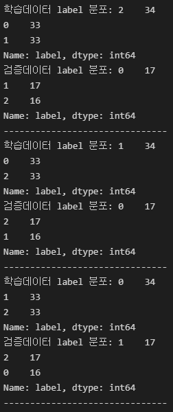 for train_index, test_index in skf.split(iris_df, iris_df['label']):