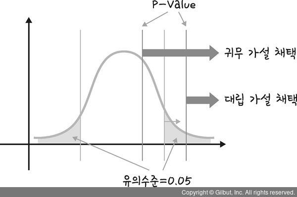 - p-value값의 유의수준은 일반적인 문제에서는 0.05,