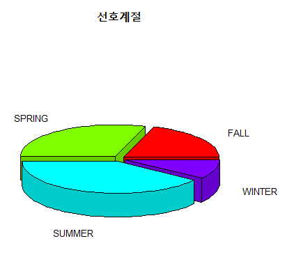 pie3D(df, main='선호계절', labels=names(df), labelcex=0.8