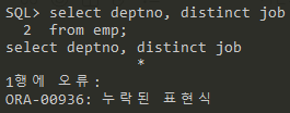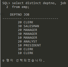 from emp; --DISTINCT가 예전에는 sorting operation으로 수행되었으나, hashing 방식으로 수행함.