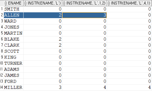 SELECT ename, instr(ename, 'L'), instr(ename, 'L', 1, 2), instr(ename, 'L', 4, 1)