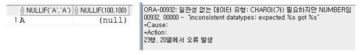 : arg1과 arg2가 동일한 타입이어야 함. - nvl2(arg1, arg2, arg3)