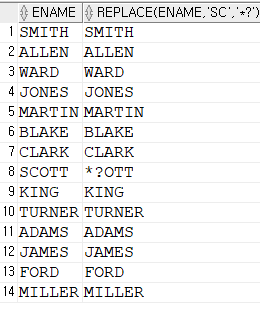 -- REPLACE(chr, search_string, replace_string) : char 문자열에서 search_string 값으로 들어온 문자를 replace_string값으로 대체하여 이 결과를 반환