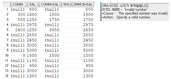 select comm, sal, comm+sal, nvl(comm, 0)+sal