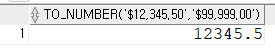 SELECT to_number('$12,345.50', '$99,999.00') FROM dual; --동일하게 달러를 넣어야함 > $기회는 저장하지 않기 때문