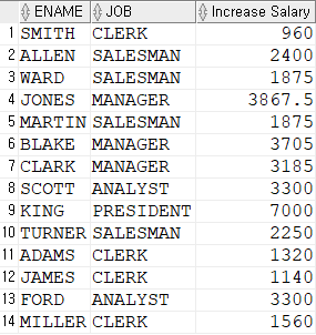 'SALESMAN', sal*1.5) "Increase Salary"