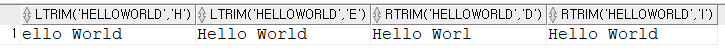 --RTRIM(char [, set]) : 가장 오른쪽 끝에서 제거한 결과 반환