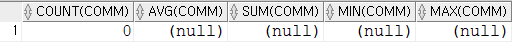 SELECT count(comm), avg(comm), sum(comm), min(comm), max(comm)
