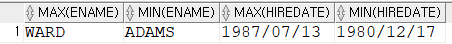 SELECT max(ename), min(ename), max(hiredate), min(hiredate)