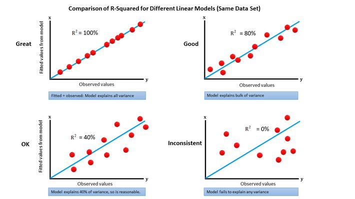 # 선형회귀 (Linear Regression) 분석에서 X가 Y를 얼마나 잘 설명/예측하는가를 알려주는 통계량(평가지표)?