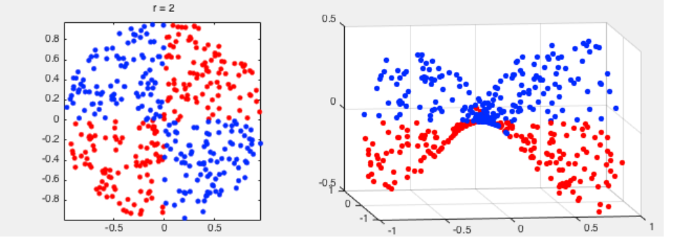 - 직선으로 주어져 있던 입력샘플의 공간을 휘어진 공간으로 변형시키고 이전에 사용했던 직선으로 잘라내는 방법